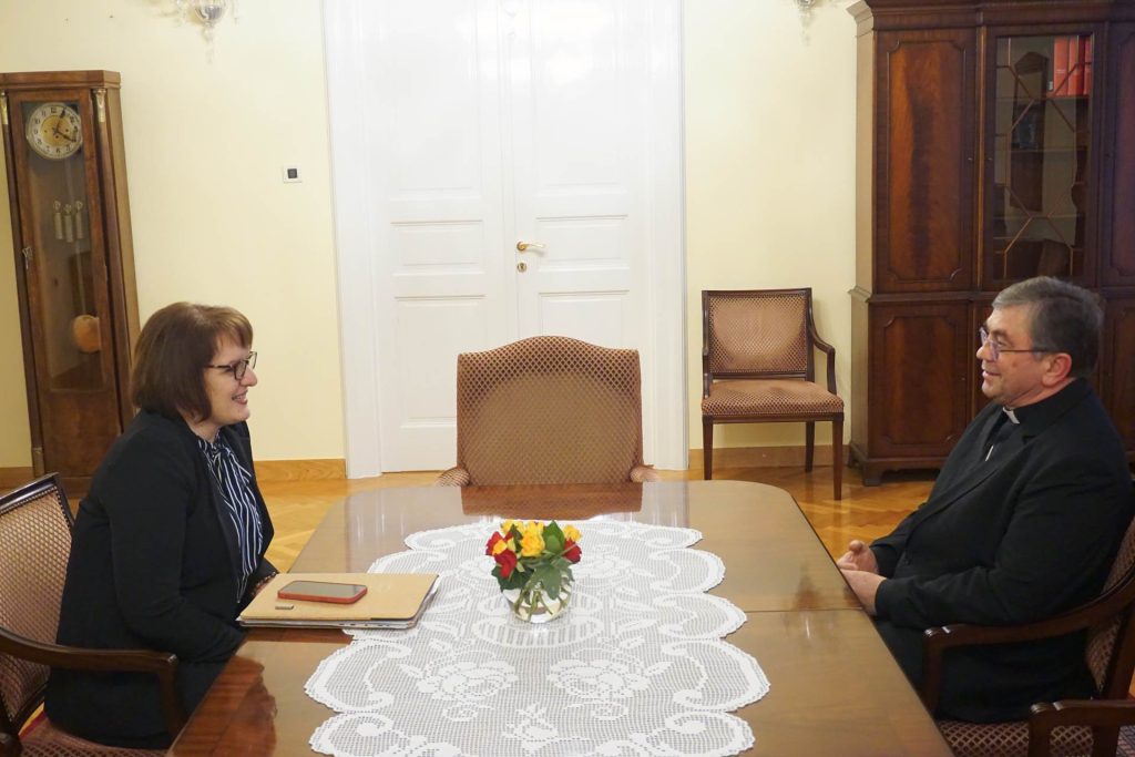 Biskup Ivo je zahvalio gradonačelnici na svemu onome što Grad Pleternica čini za brojne hodočasnike u pleterničko Svetište te izrazio nadu da će se takva suradnja i dalje nastaviti. Dotaknuli su se i drugih tema, među kojima i karitativnog služenja Crkve i socijalnog djelovanja Grada, velike uloge i značenja časnih sestara Kćeri Božje Ljubavi, kao i pitanja suradnje Crkve i grada Pleternice u obnovi crkvenih objekata koji se nalaze na području Grada.