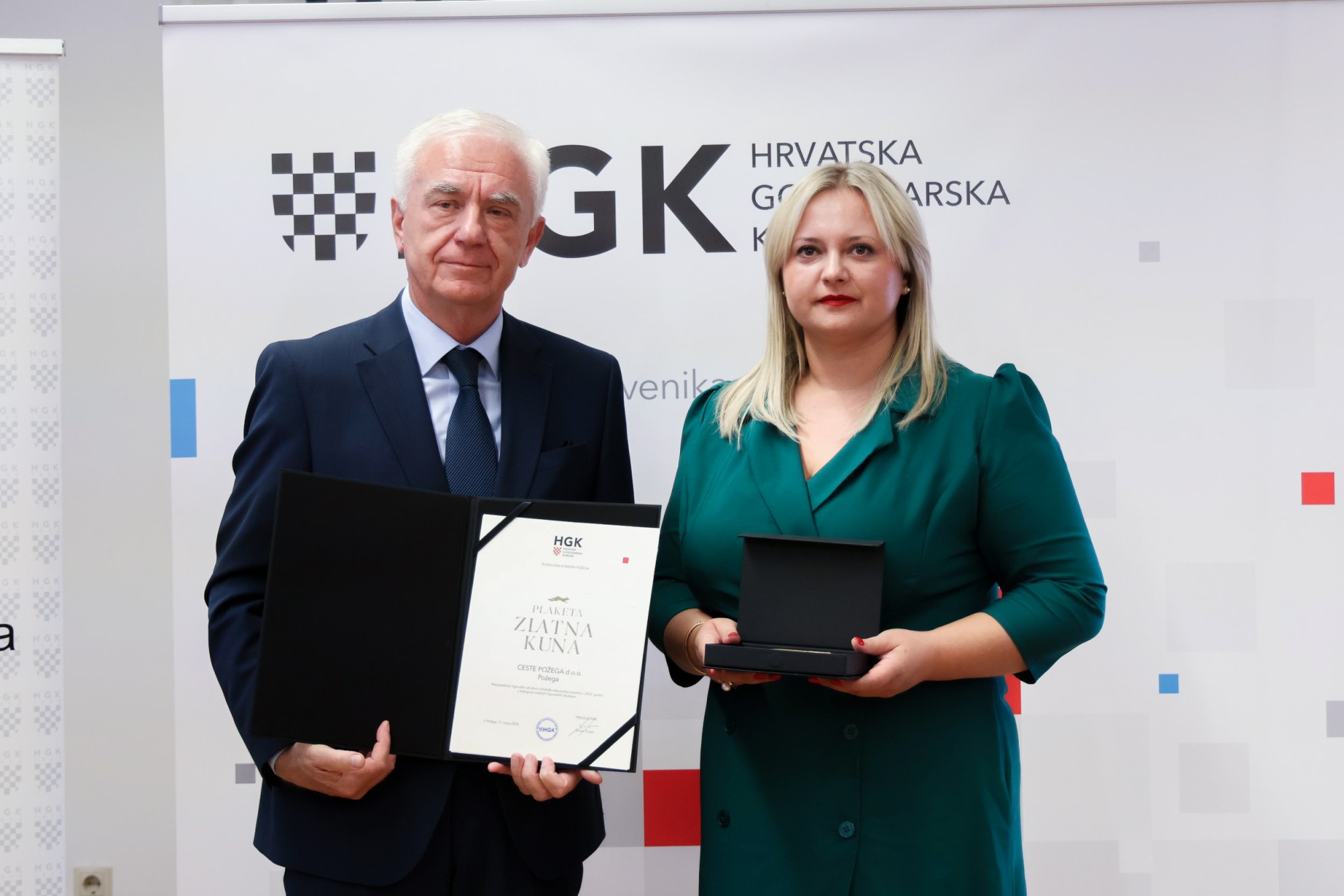 Zlatnu plaketu za najuspješnije srednje trgovačko društvo u 2023. godini dobila je tvrtka Ceste Požega d.o.o. iz Požege.