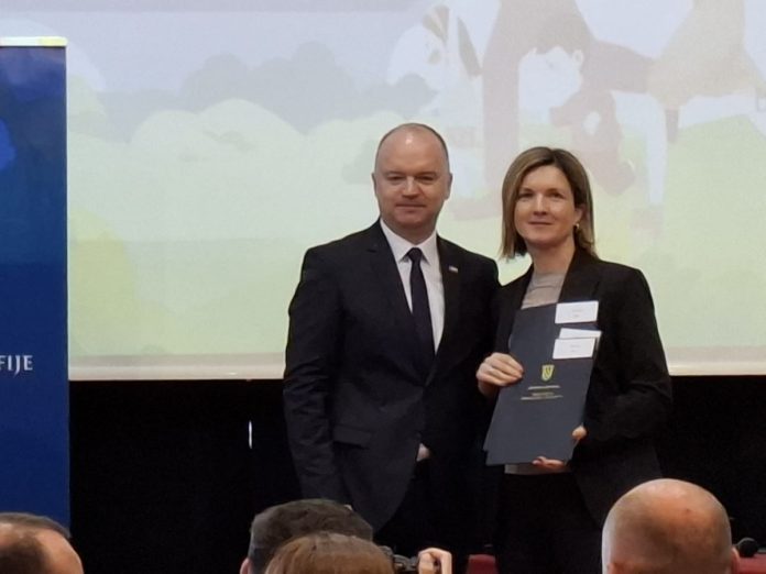 Jučer je u Vukovaru održano svečano potpisivanje ugovora o dodjeli bespovratnih sredstava u sklopu dvaju javnih poziva Ministarstva demografije i useljeništva: „Dostupnost kvalitetne skrbi za djecu u lokalnim zajednicama kroz poboljšanje materijalnih uvjeta u dječjim vrtićima“ i „Dostupnost kvalitetnih i priuštivih sadržaja za djecu u lokalnim zajednicama kroz opremanje i uređenje igrališta za djecu“. Svečanosti je u ime Grada Požege prisustvovala pročelnica Upravnog odjela za komunalne djelatnosti i gospodarenje Jelena Vidović.