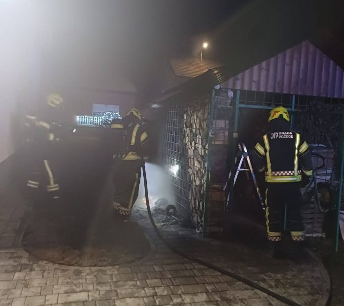 U nedjelju 28. prosinca 2025. oko 23.50 sati u Požegi u Ulici Josipa Paviševića u dvorištu obiteljske kuće, došlo je do požara na drvarnici u vlasništvu 38-godišnjaka.
