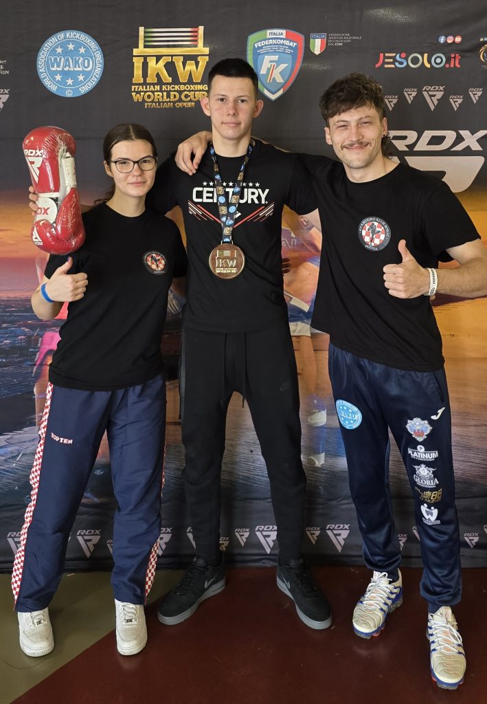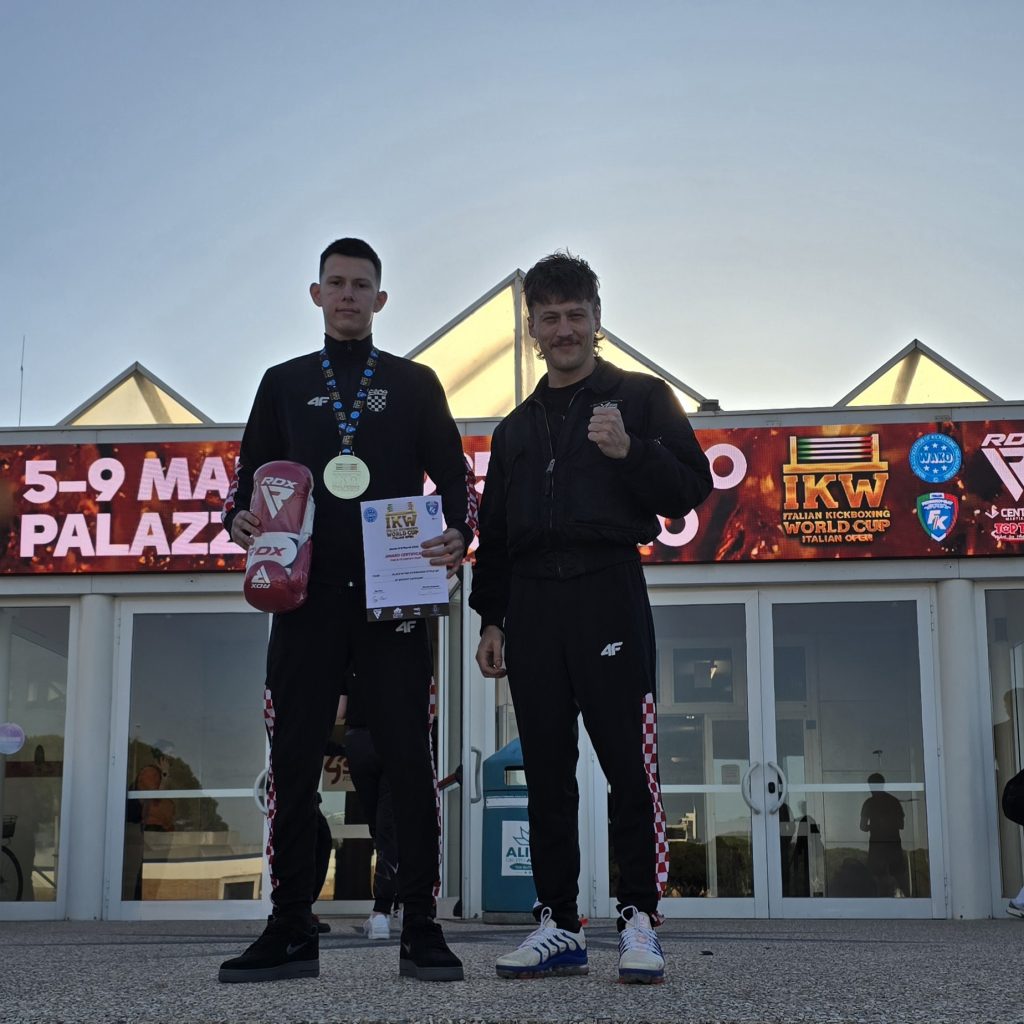 Prvi je na red došao Ivano Đevlan, koji od ove sezone nastupa u juniorima u K1. Podsjetimo, nedavno je osvojio Europski Kup u K1 u Bugarskoj, prekidom u 1. rundi. U Italiji je prvi dan u prvom kolu osigurao direktan prolaz kao nositelj kategorije. U petak ga je u finalu dočekao predstavnik iz Njemačke. Borba je krenula oštro s obje strane. Ivano u dogovoru s trenerom u 2. rundi diže tempo te u izmjeni direktom pogađa Njemca, nakon čega je suparnik pao kao pokošen! Čistim nokautom pobjeđuje inače vrsnog Kyokushin borca, te osvaja Svjetski Kup u Italiji.