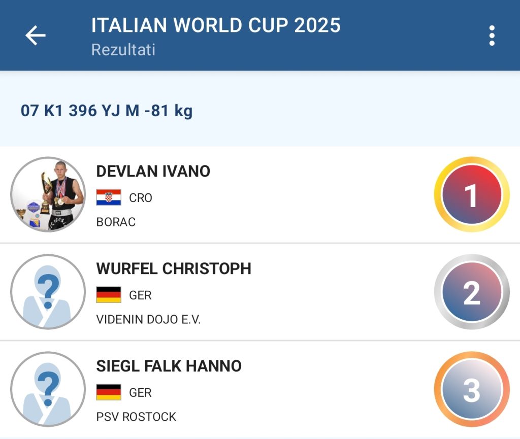 To nije sve, Ivano je ovim osvajanjem došao na vrh Svjetske WAKO ljestvice u mlađim juniorima K1 -81kg! Postao je trenutno najbolji na Svijetu u toj kategoriji!
