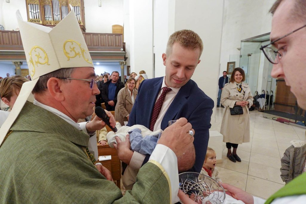 Na početku slavlja biskup je kazao kako nedjeljna Božja riječ nastavlja poticati na razmišljanje o molitvi istaknuvši kako je sveta misa vrhunac svake molitve. Izrazio je potom radost što će u toj svetoj misi maleni Nikola primiti sakrament krštenja i po njemu postati dijete Božje. „Dok se radujemo sakramentu svetog krštenja i zahvaljujemo Bogu za dar života, molimo za ovu obitelj i za sve naše obitelji, za one obitelji koje ne mogu imati djecu, za razorene obitelji i za obitelji koje su u krizi te traže svjetlo života od Boga za sebe i za svoju djecu, za starce i nemoćne, za ljepotu obiteljskog braka i života“, poručio je.
