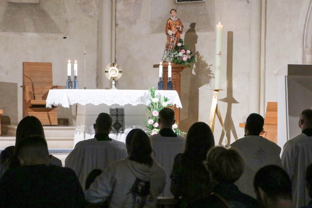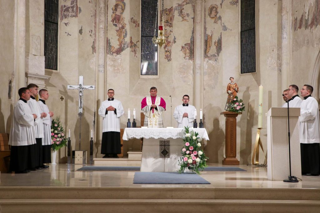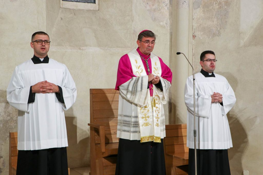 Molitveno bdijenje s euharistijskim klanjanjem za kandidate Požeške biskupije za sveti red đakonata održano je u predvečerje proslave Biskupijskoga dana, 19. rujna 2025., u požeškoj crkvi sv. Lovre.
