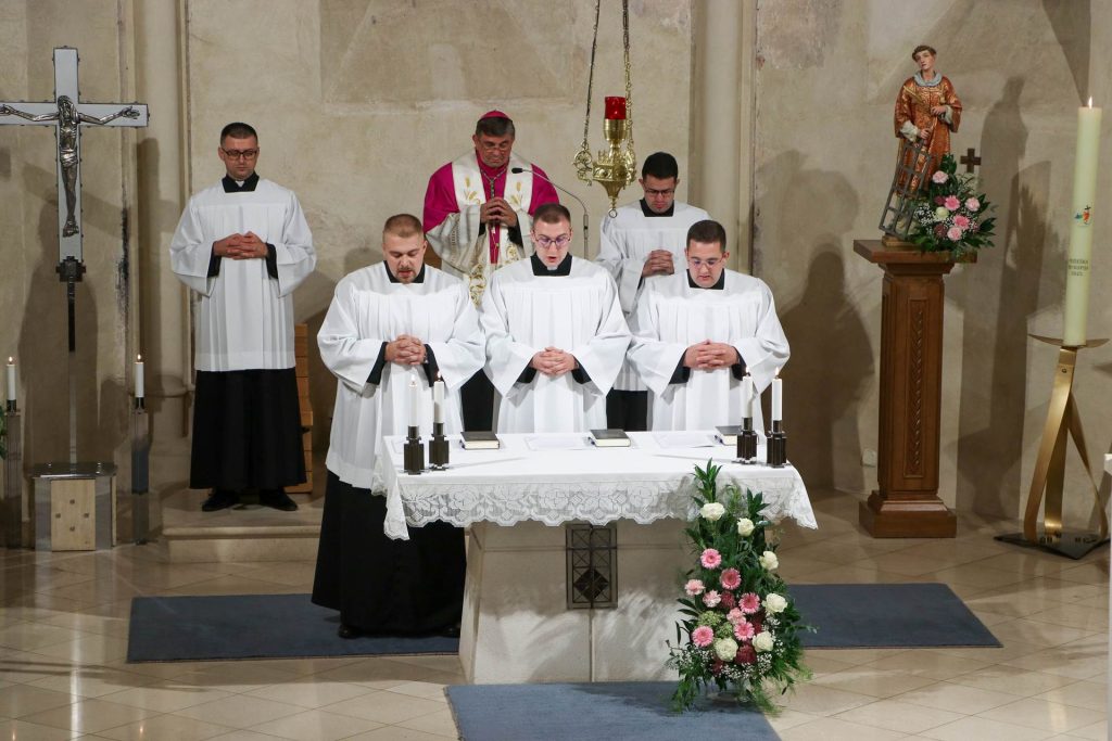 Potom su kandidati Dario Bauman iz Župe sv. Luke Evanđelista u Lukaču, Mislav Juraković iz Župe Mučeništva sv. Ivana Krstitelja u Zapolju i Antonio Kljajić iz Župe sv. Josipa u Đurđenovcu ispovjedili vjeru i položili prisegu vjernosti beženstvu i služenju u požeškoj mjesnoj Crkvi. Biskup im je na kraju poručio kako će ih na njihovu putu trajno pratiti podrška i molitva Crkve te je zahvalio svima koji su se okupili na molitveno bdijenje.