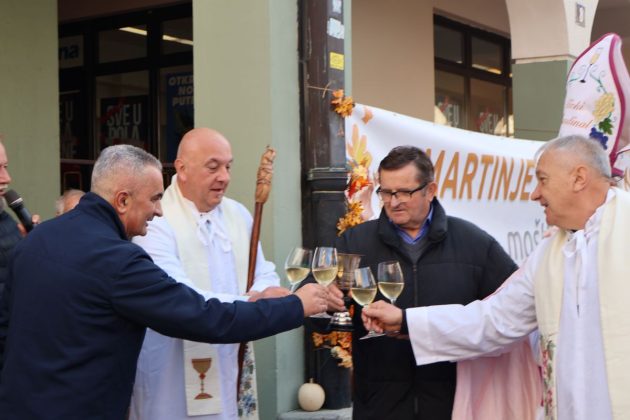 Središnji i najiščekivaniji trenutak manifestacije stigao je u 11:30, kada je započeo omiljeni običaj , krštenje mošta. Uz obilje šale, pjesme i vinskog duha, ceremoniju je predvodio poznati “vinski kardinal” Vlado Bauer, uz svog vinskog kuma Matu Saiferta.