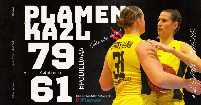 U 13. kolu Premijer ženske košarkaške lige, košarkašice Plamen Požege na domaćem su terenu dočekale i uvjerljivo svladale splitski KAŽL rezultatom 79:61. Bio je to prilično jednosmjeran dvoboj koji je u potpunosti pripao našim curama. Nakon uvodnih nekoliko minuta rastrzane igre s malo malo poena na obje strane, Plamene hvataju ritam i veliki korak ka pobjedi čine već u prvoj dionici, u kojoj su stekle prednost od čak +14 (26:12). Nakon sjajne prve dionice, početkom druge došlo je do blagog pada, kojeg gošće koriste i serijom 7:2 prilaze na -9 (28:19) u 12. minuti utakmice.
