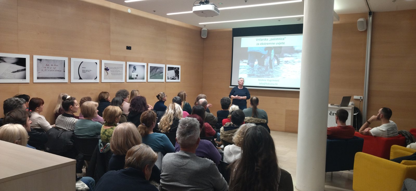 “Tijekom proteklog tjedna održana su dva vrtlarska predavanja u Požegi (23.01.2025.) i Slavonskom Brodu (22.01.2025.) na temu “Vrtlarska “Početnica” za ekstremne uvjete – uzgoj zdrave hrane tijekom cijele godine”. Predavačica je bila Andrea Vugrinović, iskusna vrtlarica i voditeljica Lokvina d.o.o. za ekološku poljoprivredu. Interes za predavanja je bio ogroman te su vrlo brzo napunjene dvorane i u Gradskoj knjižnici Požega i Gradskoj knjižnici Slavonski Brod. Oko 130 osoba je prisustvovalo predavanjima.