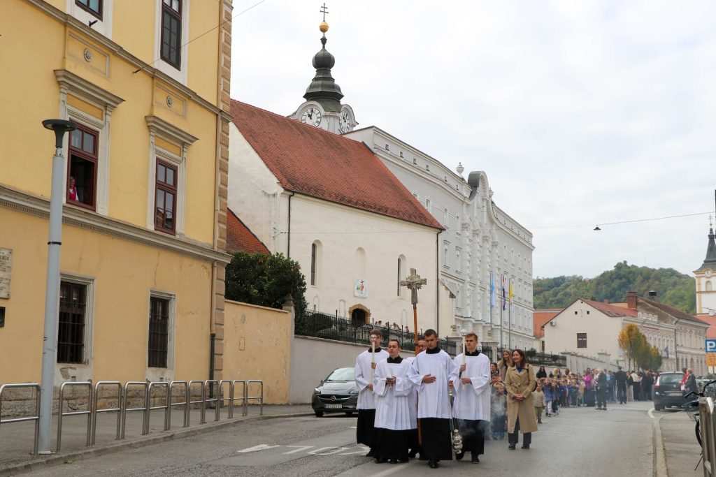 Slavlje je započelo procesijom s relikvijom sv. Terezije iz srednjovjekovne crkve sv. Lovre, a po dolasku u Katedralu biskup Ivo je uputio nazočnima pozdravnu riječ dobrodošlice čestitajući svima svetkovinu sv. Terezije Avilske, zaštitnice Katedrale i katedralne župe, grada Požege i požeške Katoličke gimnazije.