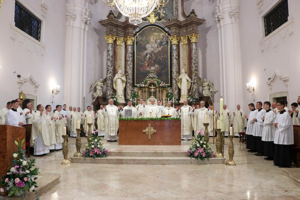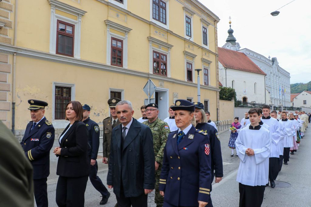 Pozdravio je potom kanonike Stolnog kaptola sv. Petra, svećenike iz župa grada Požege i Katedralnog arhiđakonata te središnjih biskupijskih ustanova na čelu s generalnim vikarom Želimirom Žuljevićem, preč. Dogana koji je predvodio trodnevnu pripravu te đakone, redovnike i redovnice, vjeroučitelje, bogoslove i pitomce požeškog Kolegija. Potom je uputio pozdrave i javnim dužnosnicima na čelu s požeškim gradonačelnikom Borislavom Miličevićem i požeško-slavonskom županicom Antonijom Jozić, predstavnicima gradskih crkvenih i civilnih udruga kao i predstavnicima Hrvatske vojske i policije. Pozdravio je i sve vjernike požeških župa, osobito djecu i mlade iz katoličkih škola zajedno s njihovim ravnateljima i profesorima.