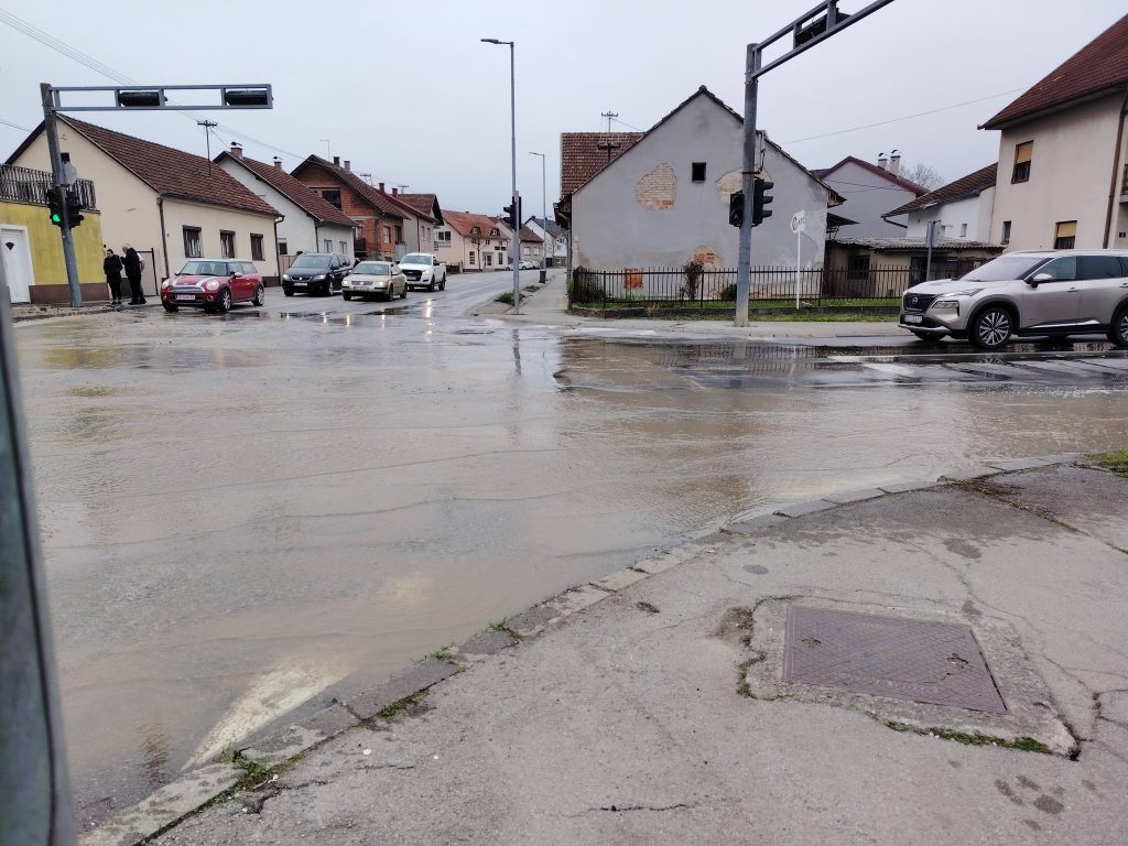 Danas oko 15:30 sati na križanju ulica Zrinske, Frankopanske i Pavla Radića došlo je do puknuća vodovodne cijevi, što je uzrokovalo izlijevanje veće količine vode i privremenu poplavu na tom području.