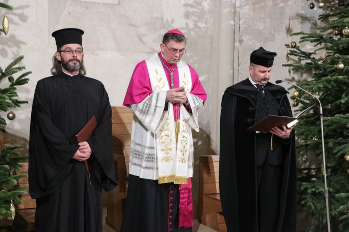 Biskup Ivo je na početku slavlja rekao: „Prije 1700 godina kršćani su raspravljali o pitanjima vjere, suočavajući se s poteškoćama i dezorijentiranošću. Iz tog sukoba, koji je ponekad bio i žestok, proizašla je mogućnost da zajedno naviještaju svoju vjeru riječima izraženim u Nicejskom vjerovanju. Danas, okupljeni ovdje kao zajednica kršćana, dolazimo iz različitih kršćanskih zajednica da bismo posvjedočili našu zajedničku vjeru. Krist je među nama. Pitanje ‘Vjeruješ li ovo?’, preuzeto iz Ivanova evanđelja, središnja je misao ovogodišnje molitvene osmine za jedinstvo kršćana, a poziva nas na produbljivanje osobne vjere, a onda i duboki dijalog i razumijevanje“, kazao je biskup te uputio pozdravnu riječ dobrodošlice svim sudionicima, napose biskupu Petru te o. Đorđu i o. Nikoli koji su svojim sudjelovanjem obogatili ovo ekumensko slavlje. Biskup je na kraju svima poželio da im ovaj molitveni susret bude prilika da u Kristu Gospodinu još više prodube međusobno povjerenje, dijalog i suradnju. U službi riječi za prvo čitanje naviješten je ulomak Ponovljenog zakona o ljubavi prema Bogu; za drugo čitanje Prva Petrova poslanica u kojoj se govori o kušnjama koje pročišćavaju vjeru i novoj nadi kroz uskrsnuće Isusa Krista, a za evanđeoski ulomak izvještaj o susretu apostola Tome s uskrslim Kristom.