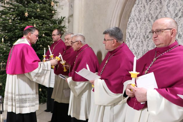 Biskup Petar Sen je u svom nastupu izrazio radost zbog zajedništva u Isusu Kristu te je svima poručio kako su se okupili oko Isusa Krista koji je jedini bitan u ovome svijetu. Osvrnuvši se na naviješteni evanđeoski ulomak, podsjetio je nazočne na riječi apostola Tome: „Gospodin moj i Bog moj“ (Iv 20,28). Naglasio je kako Toma tom izjavom ispovijeda svoju vjeru, ali istovremeno osjeća i sram. „Toma se posramio zbog toga što svemoćni Bog stoji ispred njega. Nasuprot onome što mi vjerujemo i proživljavamo, ovaj nam svijet govori da to nije istina. Mnogi nas uvjeravaju u to tako da mi gubimo one osnovne vrijednosti za koje nas je Bog stvorio. A mi živimo ono što nam je u evanđelju Gospodin obećao, a to je da imamo oprost grijeha i život vječni“, ustvrdio je biskup Sen. Kazao je potom kako nas sve ujedinjuje Isusova zapovijed učenicima da idu i navještaju evanđelje, da poučavaju i krste sve narode u ime Oca, Sina i Duha Svetoga. „Time je Sin poistovjećen s Ocem i tada više nema razlike. Svi smo mi od Boga stvoreni, ali jedino u Kristu možemo biti spašeni primajući oprost grijeha i život vječni. To sada zajedno slavimo. Neka nas ta radost i ta vjera ojača da, kada iziđemo iz ovoga svetoga doma u naše obitelji, i svakim našim korakom, riječima, uzdisajem i kucanjem srca hvalimo i slavimo Boga da svatko prepozna ovom svijetu, da smo mi Kristovi. I ako je Bog s nama, tko protiv nas“, zaključio je biskup Sen.