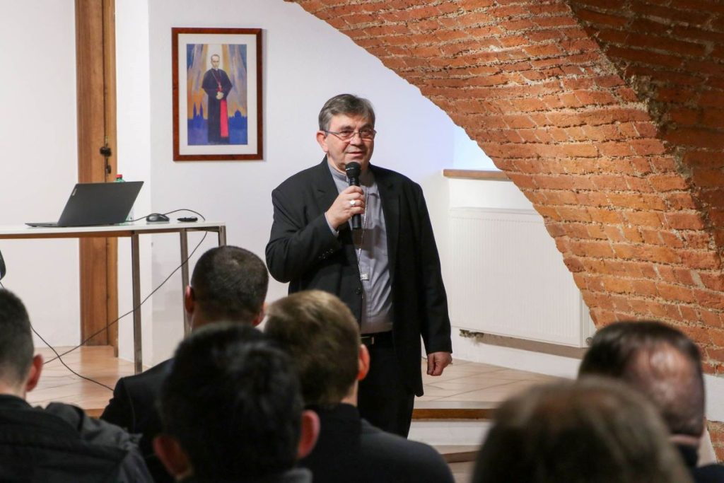 Potom je prof. Kanižaj održao predavanje o komunikaciji svećenika s mladima. Istaknuo je da djeca počinju koristiti elektroničke uređaje u vrlo ranoj dobi te je predstavio rezultate istraživanja „U potrazi za mjerom između školskog igrališta i TikToka“. Osvrnuo se na ovisnost o medijima i ekranima pojasnivši mladim svećenicima i đakonima znakove po kojima se može prepoznati. Predstavio je i smjernice za sprječavanje takvog tipa ovisnosti.