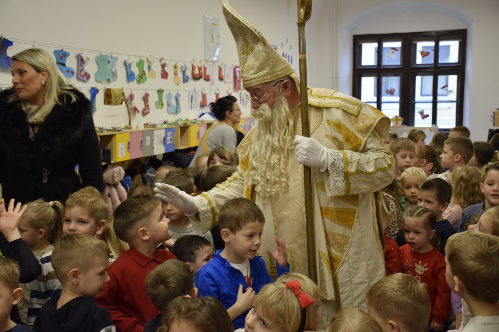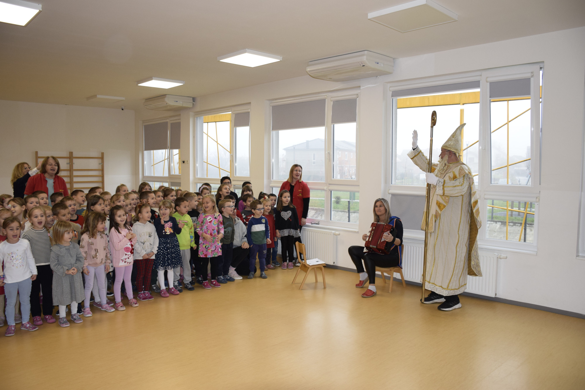 Uz obrte za čuvanje djece „Bambi“ i “Kutak sreće”, sv. Nikola, u pratnji pročelnice Upravnog odjela za društvene djelatnosti Maje Petrović, obišao je DV Požega u Rudinskoj i “Cvjetnu livadu”, DV „Radost“, DV „Šareni svijet“ te DV Sv. Leopolda Mandića, kao i dječji odjel Opće županijske bolnice, a prigodni dar dobila su i djeca koja borave sa svojim majkama na odsluženju kazne u Kaznionici.