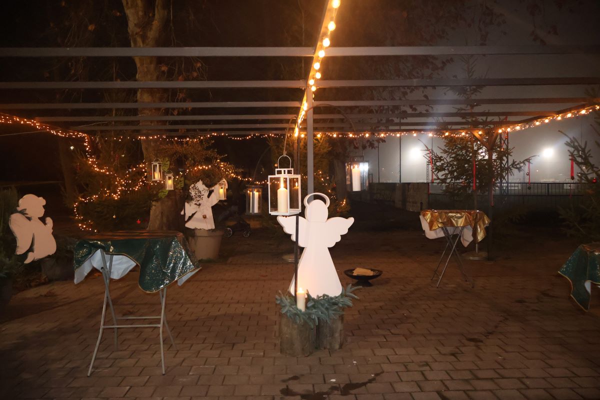 Prostor je ispunjen božićnom glazbom, a zimski ambijent, osvijetljen stotinama lampica stvara osjećaj prave magije. Za dodatnu toplinu pripremljena je vatra na otvorenom, a za okrijepu dostupni su čaj i kuhano vino, idealni za zagrijavanje ruku i srca.