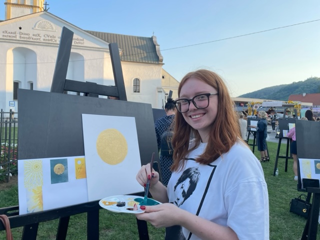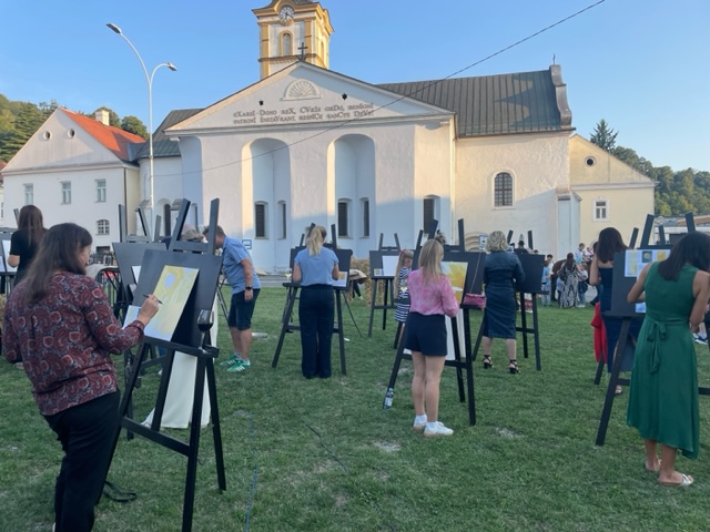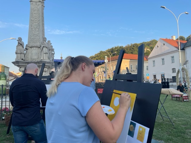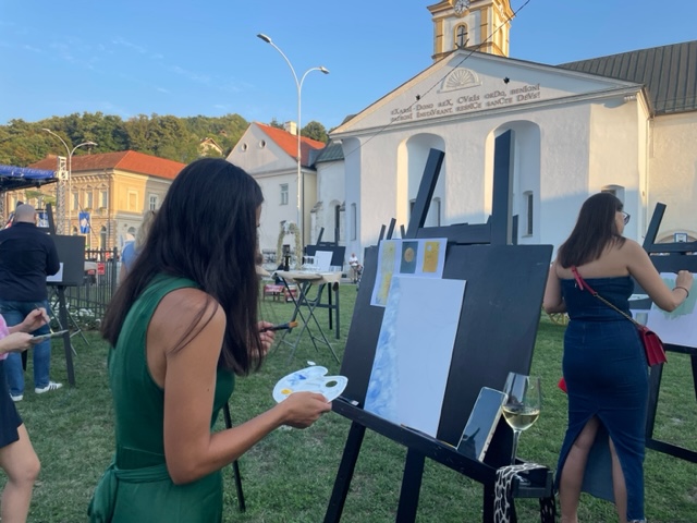 Radionica je smještena u slikovit ambijent s pogledom na franjevačku crkvu sv. Duha i tik uz spomenik Presvetom Trojstvu na istoimenom trgu. Okruženje je pružilo idealnu kulisu za stvaranje, a sudionici su uz slikarska platna imali priliku uživati i u vinima Kutjevačkog podruma, što je događaju dalo dodatnu notu hedonizma.